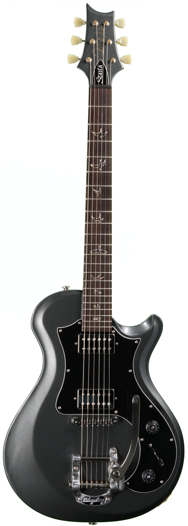 あたし、持ってるギターFender+Fenderやけど、ホントはGibsonのSGが好きなんです。笑。 レスポールも好きやけど、厚くて重そう。SGはレスポールより薄いし、何より強そう。(笑)武器っぽいところが良い。 そして最近新たに気になるのが Paul Reed SmithのStarla。PRSは鳥の形のポジションマークが可愛いなーって思ってたけど、Customみたいな主流シリーズはそんなに惹かれなかった。でもStarlaはデザインが変わってて可愛い。 バイクもそうやけど、あたし何でも見た目から入るからあんまり良くないかな。笑。ホントは音も気になるけど、弾いてみないとわからないし、何より弾いてみたところで素人のあたしには違いがわからん気がする。 まあストラトもテレキャスも良い物持たせてもらってるし、愛着あるから当分新しいギターは必要ないけどね。